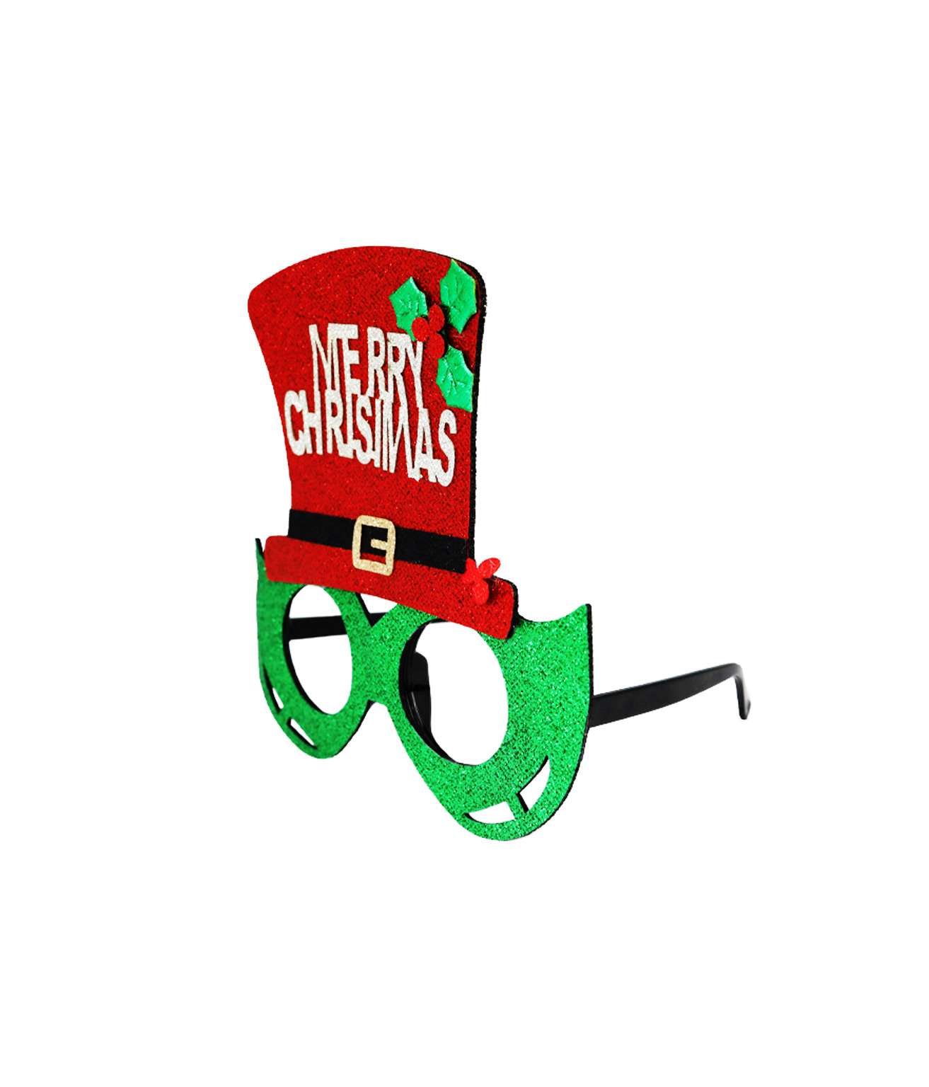 Featuring a green glitter base, red glitter belt-style hat, and cheerful “Merry Christmas” text with mistletoe detail, they?re perfect for holiday fun and photos.