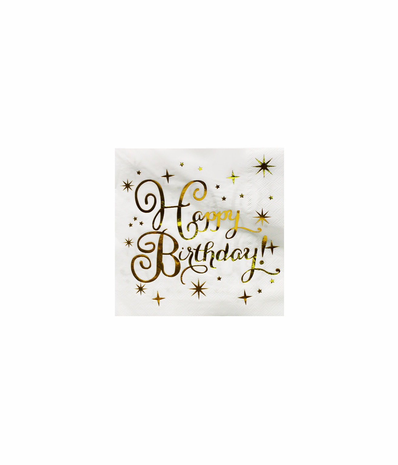 Features gold foil design star shape pattern print with text “happy birthday!” print.