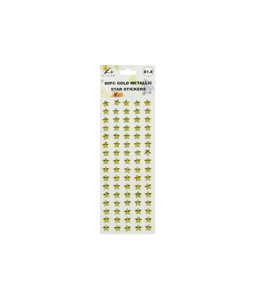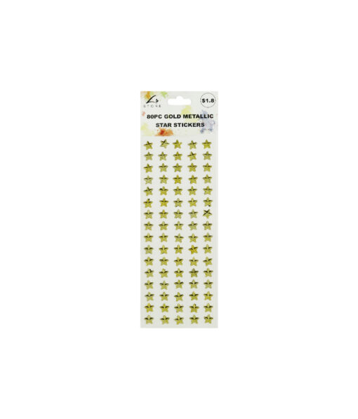 This pack contains 80 pieces of metallic gold star stickers across 2 sheets.