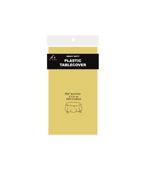 Our heavy duty plastic table cover measuring 213x213cm.