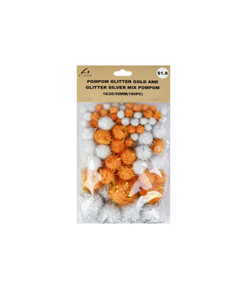 Add a touch of elegance and sparkle to your crafts with the Gold & Silver Glitter Pom Poms Assorted, Pack of 100.