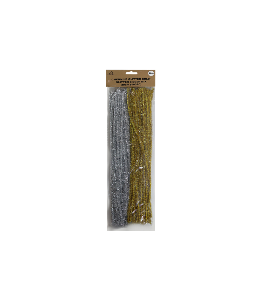 This pack includes 100 chenille stems, each 30cm in length, in a beautiful mix of gold and silver colors.