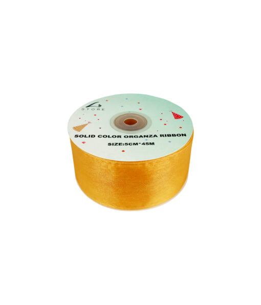 Add a luxurious shimmer to your crafts, gift wrapping, or event décor with this Gold Solid Colour Organza Ribbon.