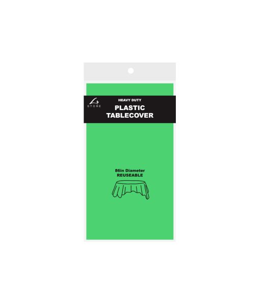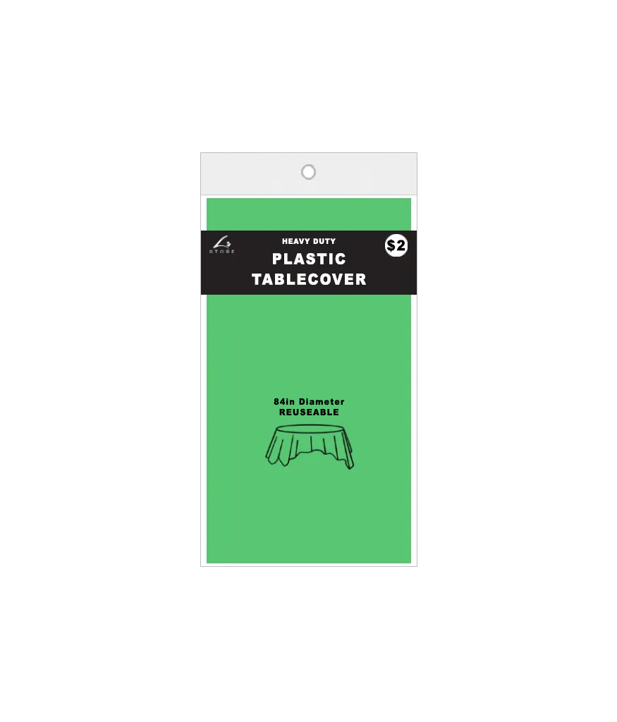 Our round plastic round tablecover serves as a colorful foundation for the whole display.