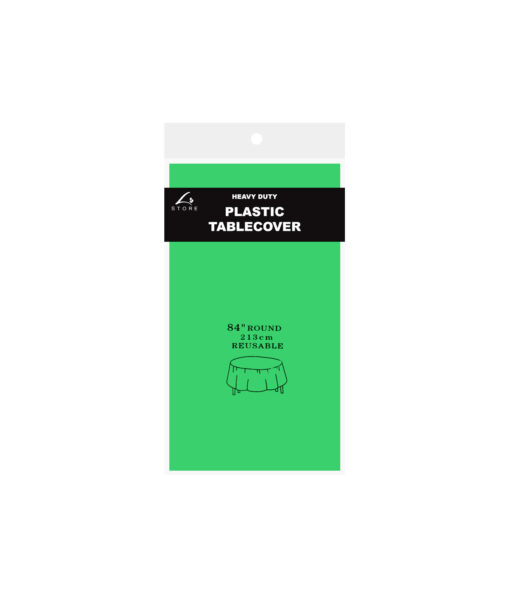 Our heavy duty plastic table cover measuring 213x213cm.