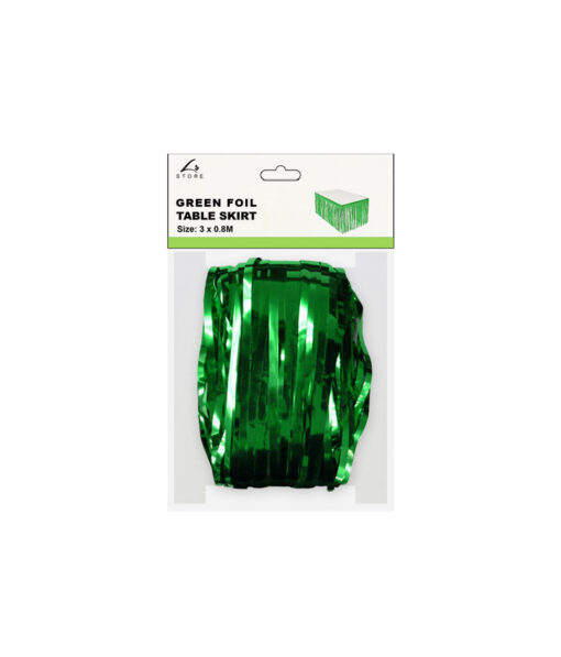 Add shimmering color with a foil table skirt.