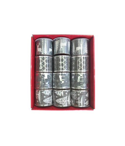 Grey Christmas Ribbon Assorted 6.3cm x 2.7m
