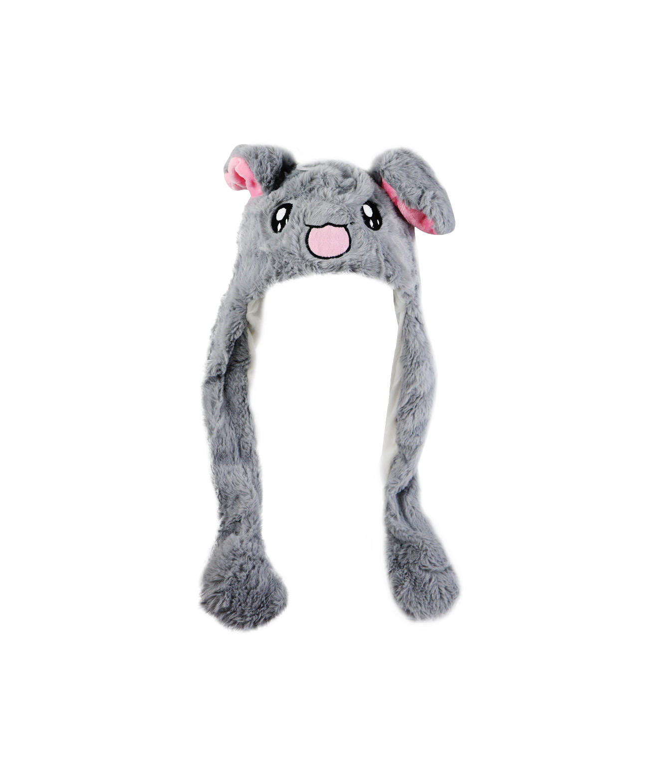 Stay warm and playful with this Grey Rabbit Plush Hat, featuring fun moving ears for added charm.