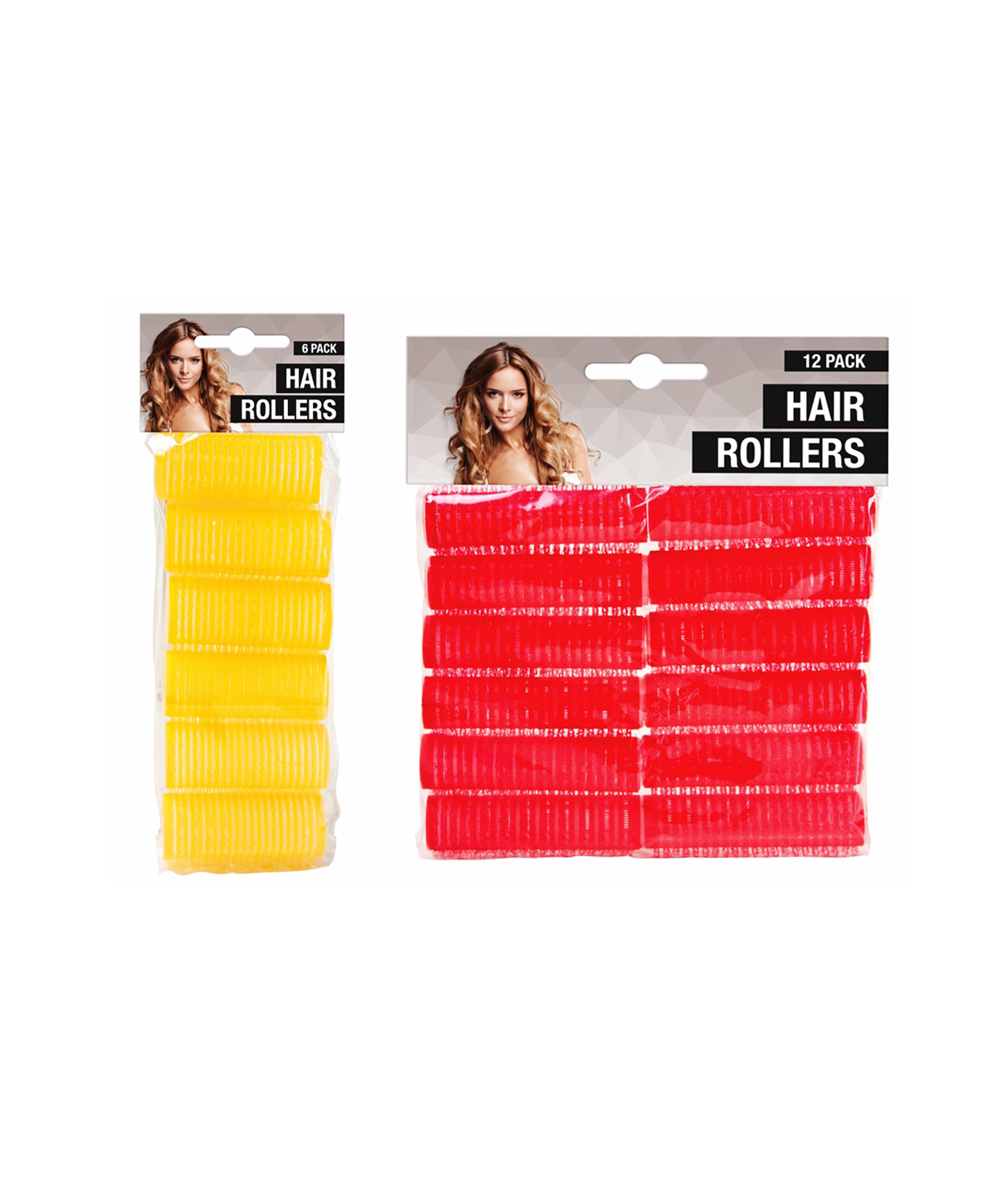 Create effortless curls and volume with these Hair Rollers Assorted, available in either a 6-pack yellow set or a 12-pack red set.