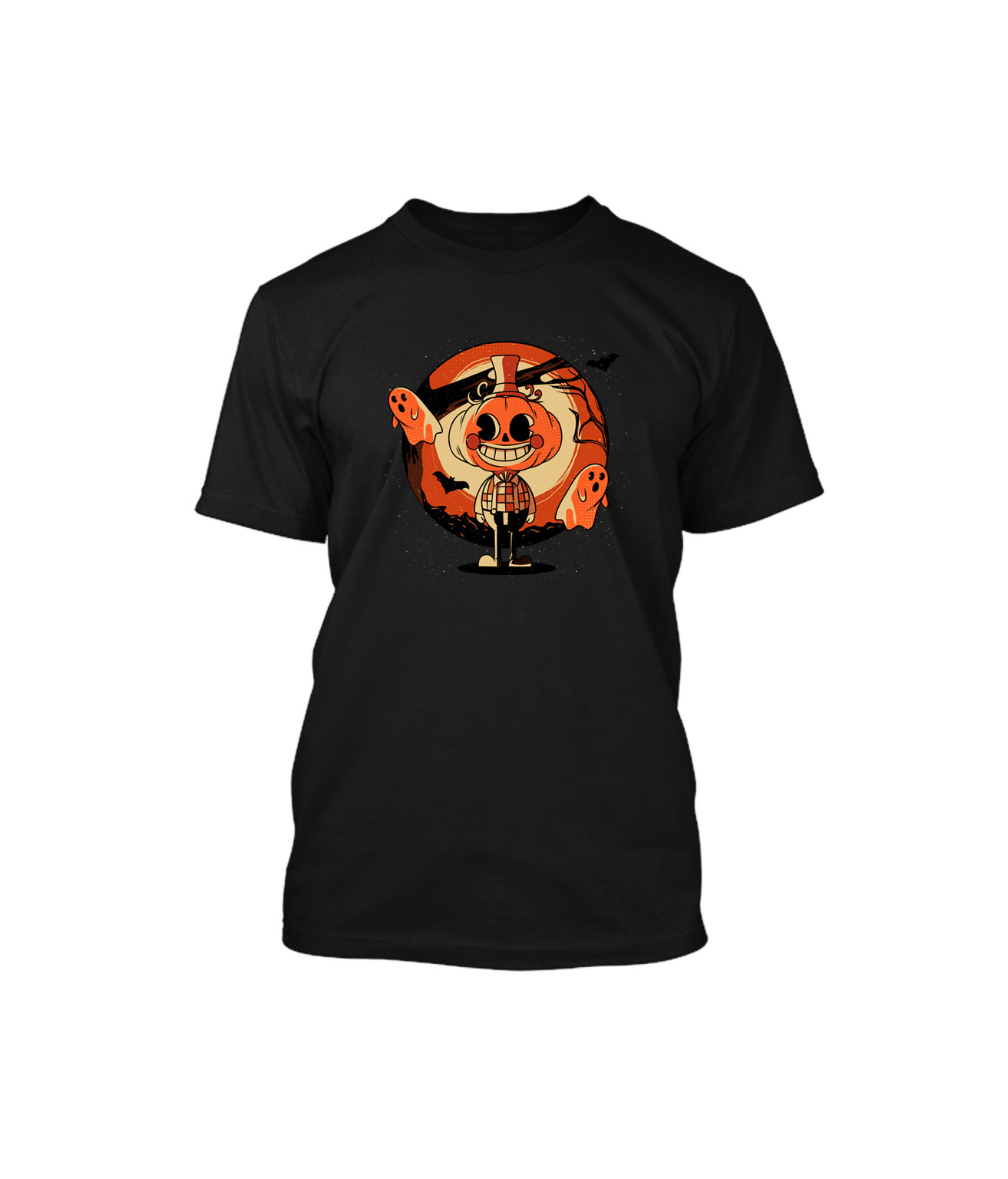 Featuring our Custom Printed Halloween Design Black T-Shirt, available in four sizes: small, medium, large, and extra large.