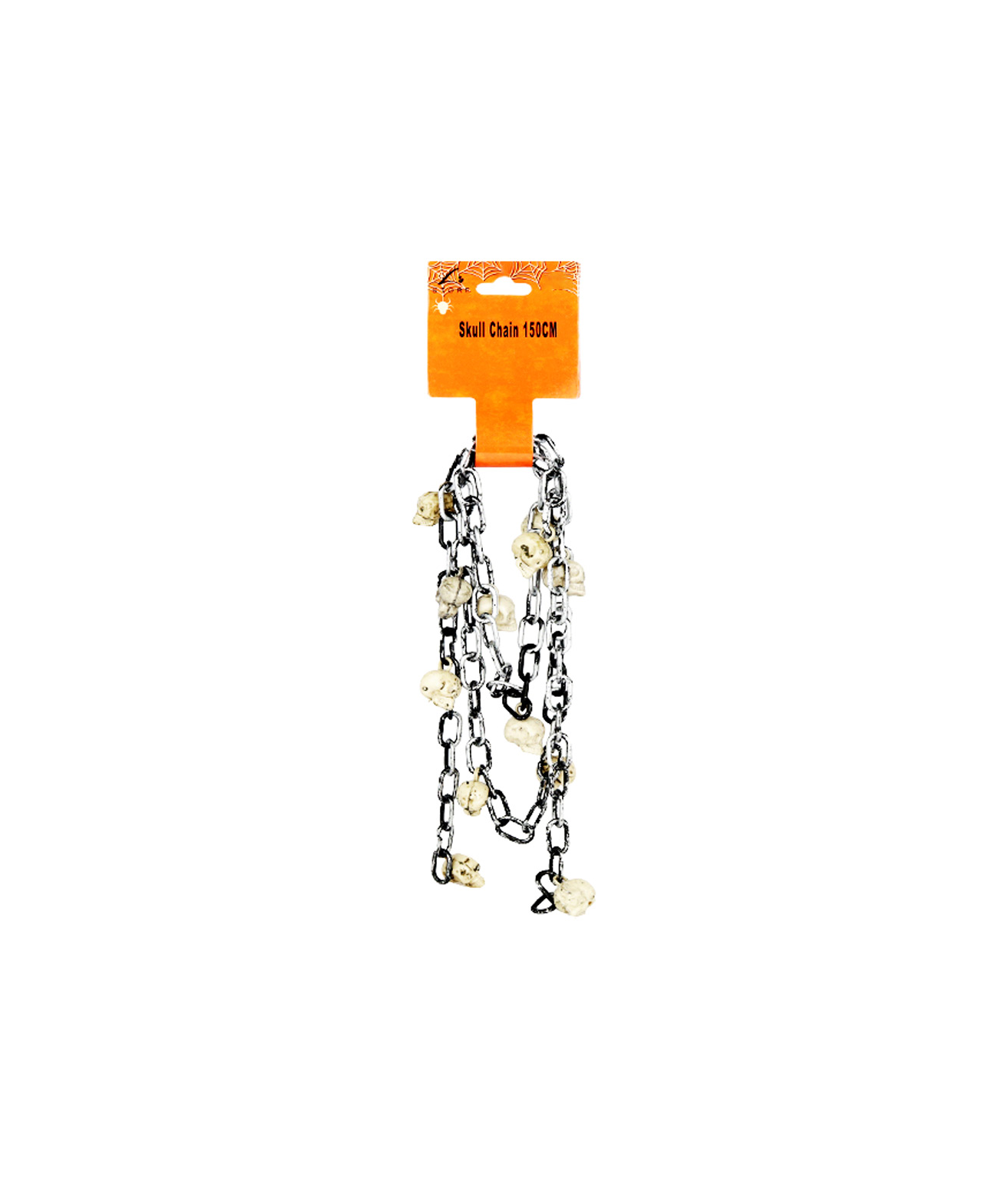 Featuring attached skulls along a twisted rope chain, it’s a spooky decoration ideal for haunted houses, doorways, or party scenes.