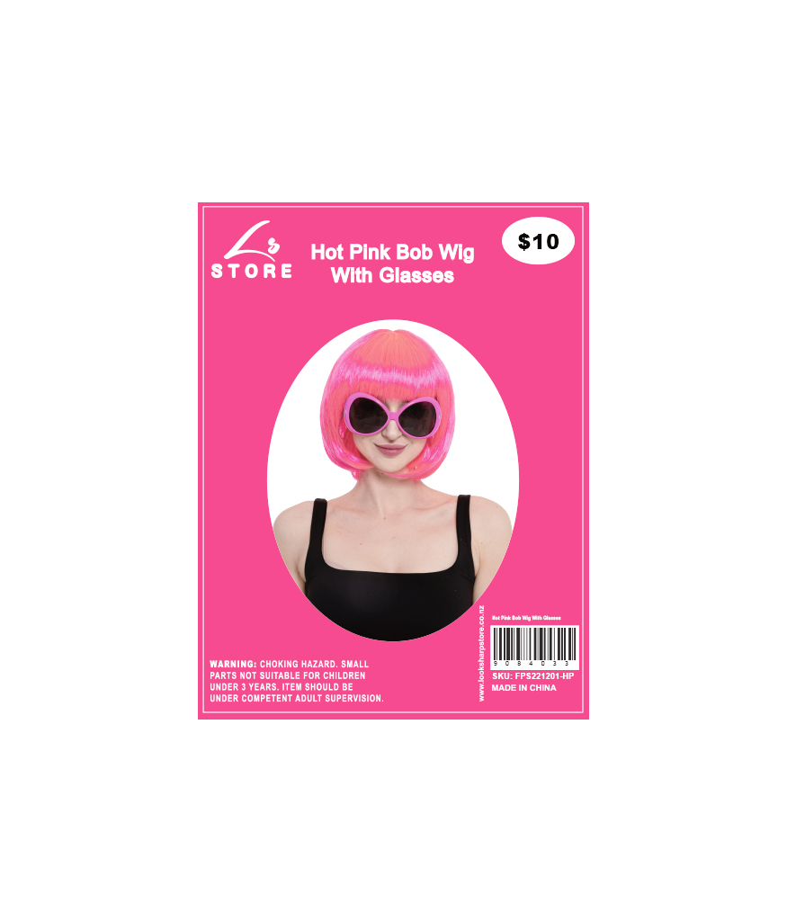 Turn heads with the Hot Pink Bob Wig with Glasses Set.