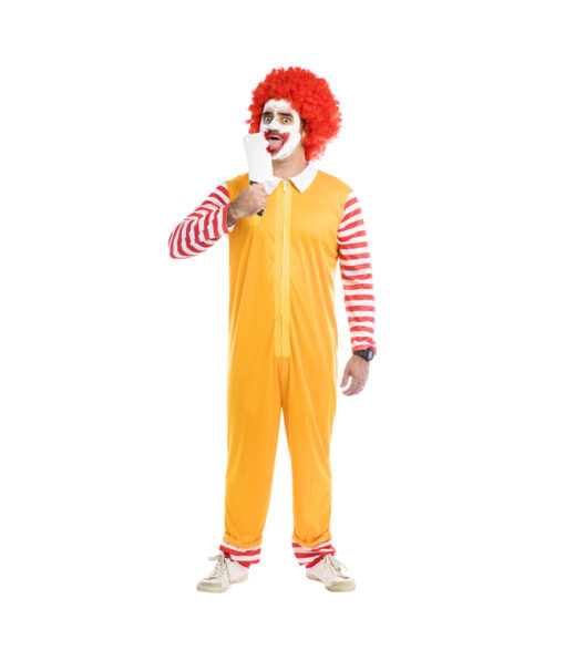 Resembles Ronald the clown from McDonalds, add a red afro wig to complete your outfit.