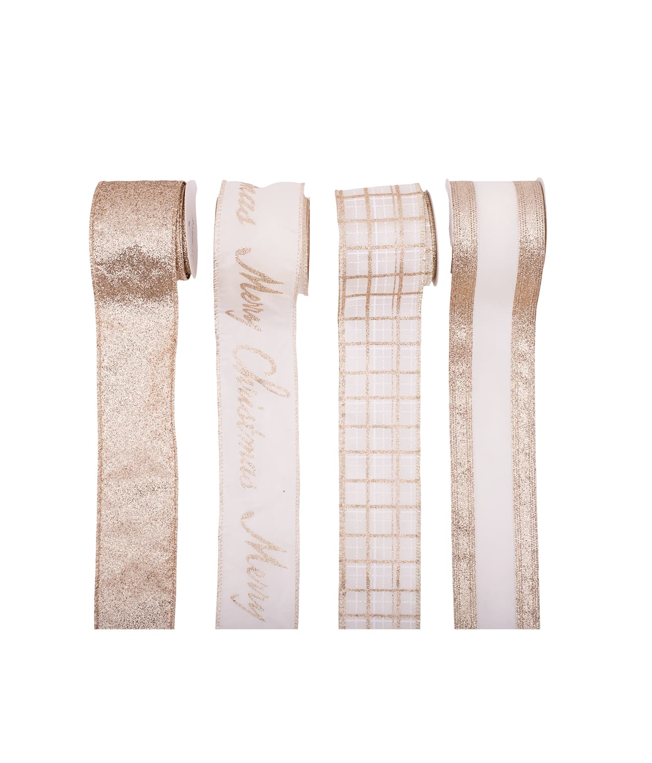 Its soft ivory texture with sparkling glitter accents makes it perfect for creating bows, wreaths, and garlands with a refined finish.