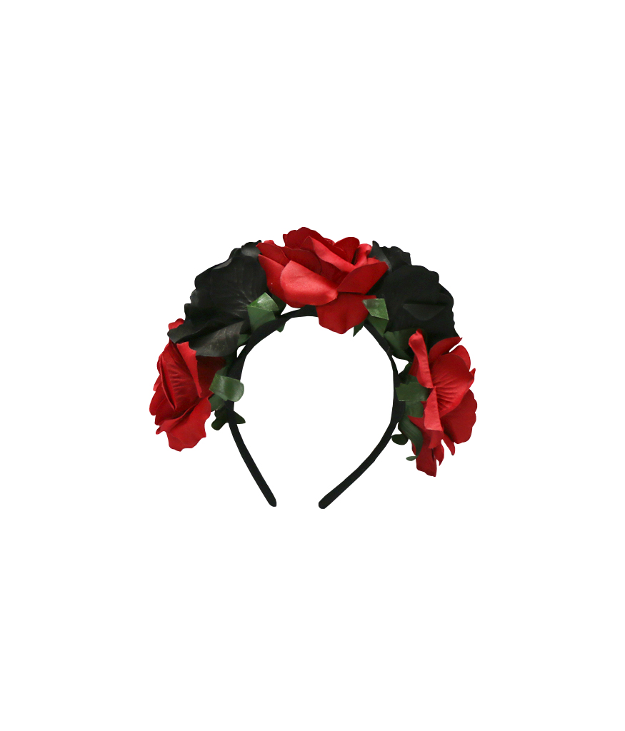 Featuring jumbo sized rose headband which comes in a red and black colour design.