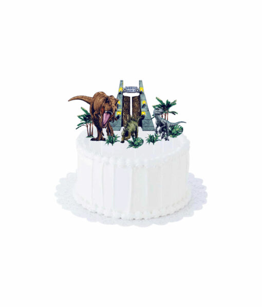 Top off your cake with prehistoric flair using the Jurassic Into The Wild Cake Topper Kit.