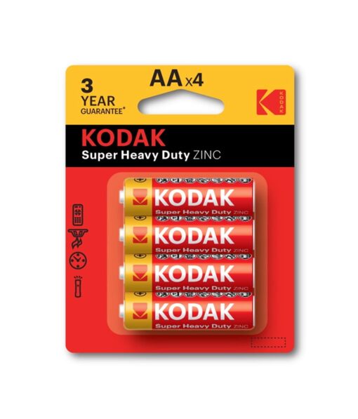 Power your devices reliably with the Kodak Heavy Duty Battery AA 4-pack.