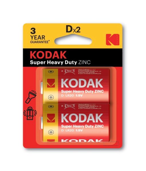 Power your devices reliably with the Kodak Heavy Duty Battery D 2-pack.