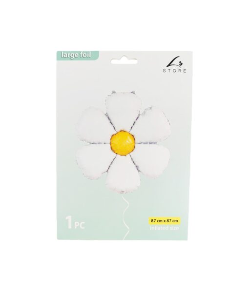 Large white daisy foil balloon designed to create a bright and cheerful decorative focal point.
