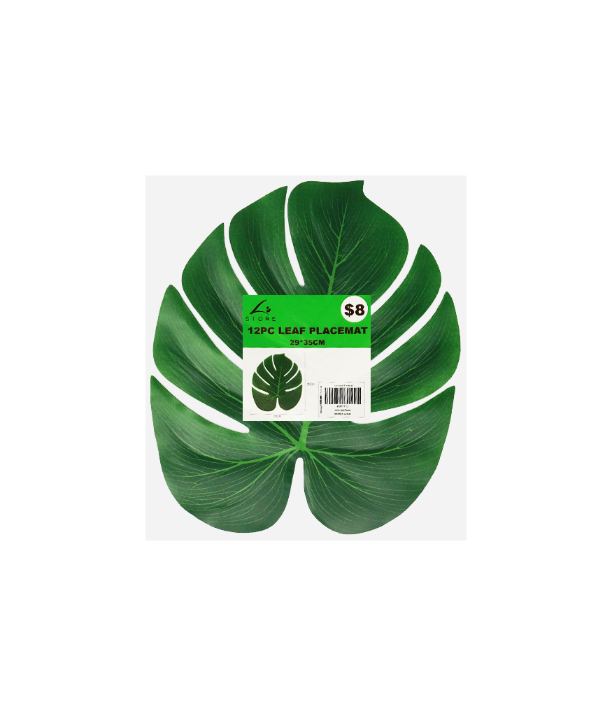Set of 12 leaf-shaped placemats measuring 29x35cm, perfect for enhancing your dining table with a touch of nature.