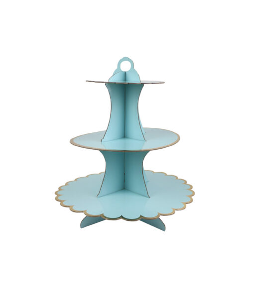 Coming in a light blue with gold edge design, this 3 tier cake stand makes a great display for your cakes, cupcakes and other desserts.