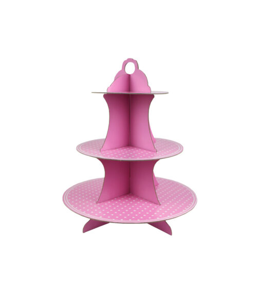 Coming in a pink with white polka dot design, this 3 tier cake stand makes a great display for your cakes, cupcakes and other desserts.