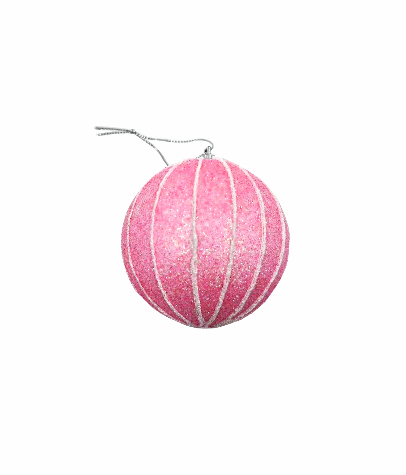 Add a soft and charming touch to your festive decor with the Light Pink Foam Christmas Ball With White Lines 8cm.