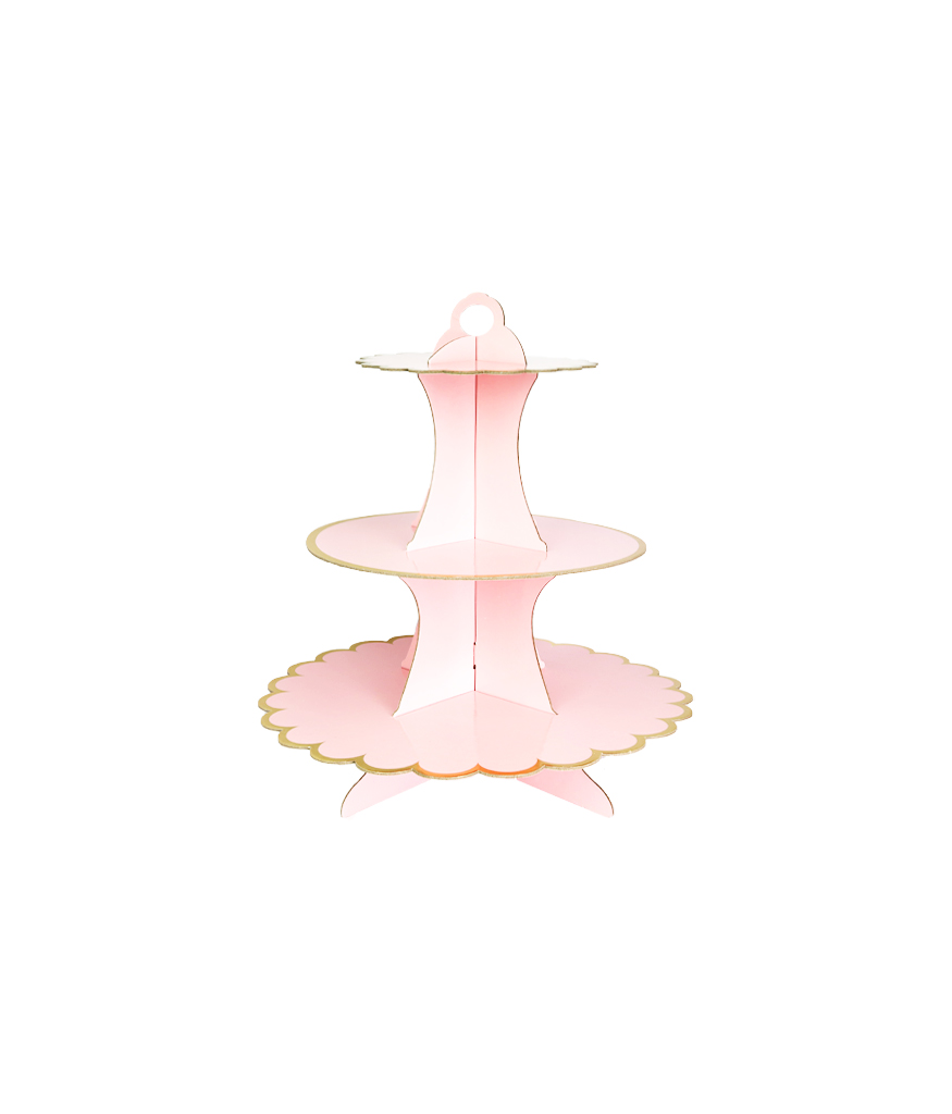 Coming in a light pink with gold edge design, this 3 tier cake stand makes a great display for your cakes, cupcakes and other desserts.