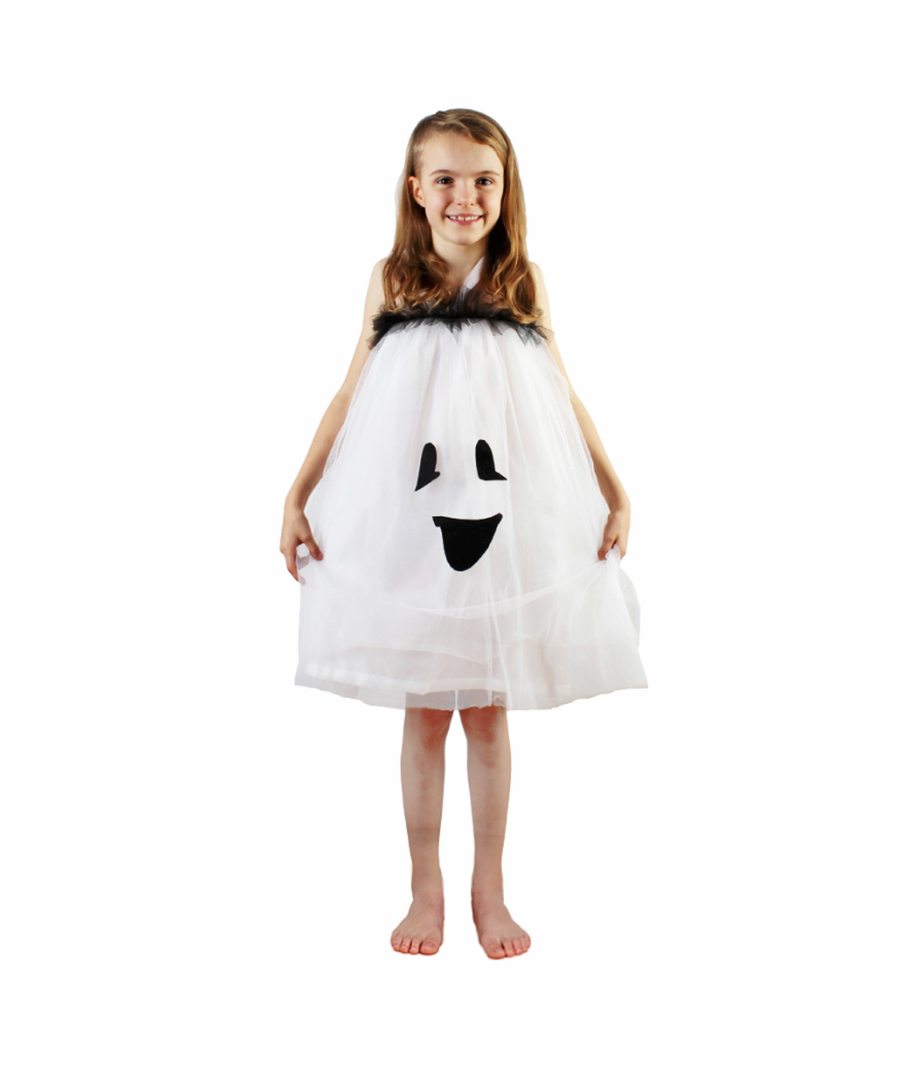 This ghost costume for toddlers features one piece dress with ghost face print design.
