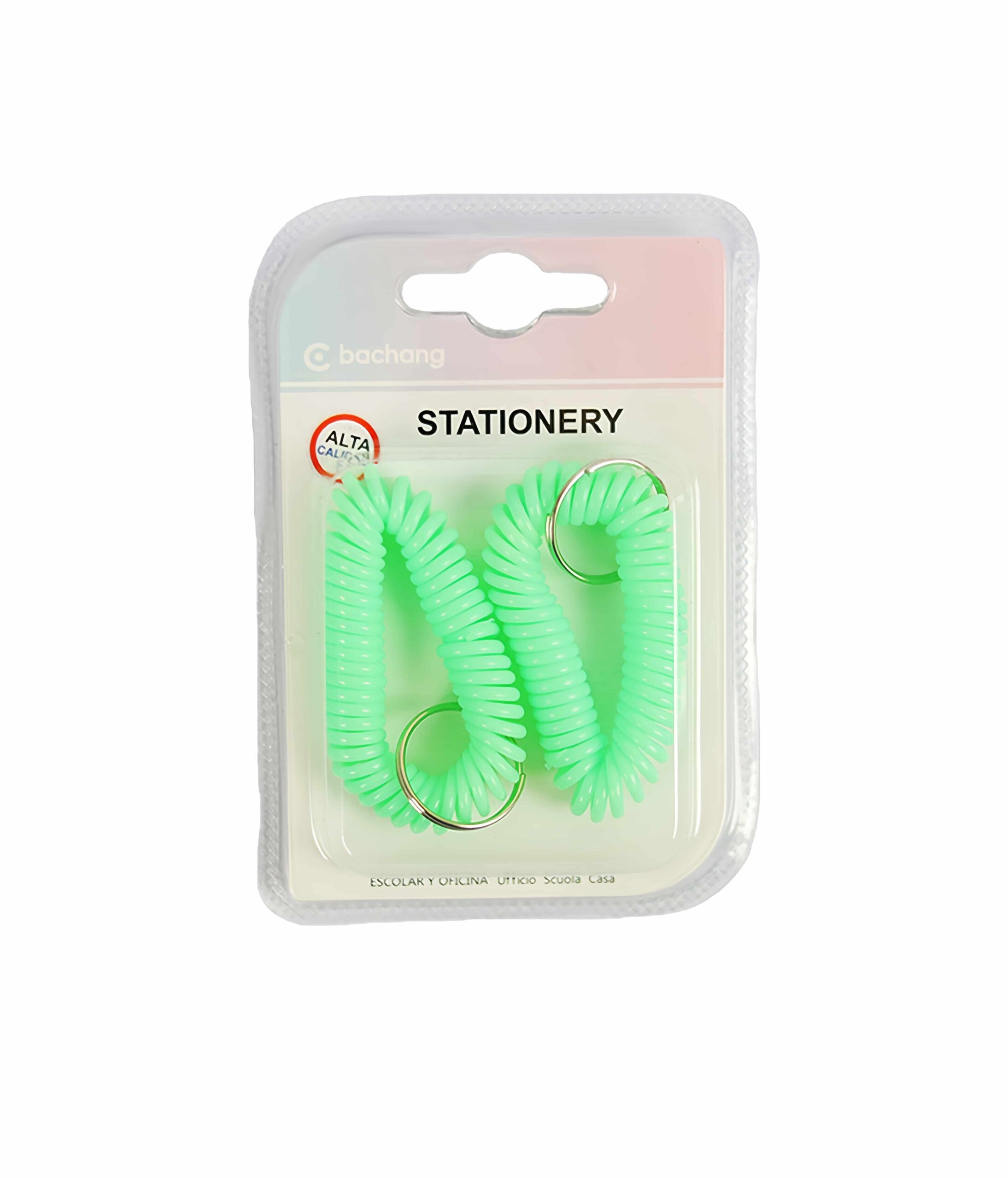 Set of two macaron green key rings designed with flexible coil straps. Provides a bright and practical solution for keeping keys secure and easy to access.