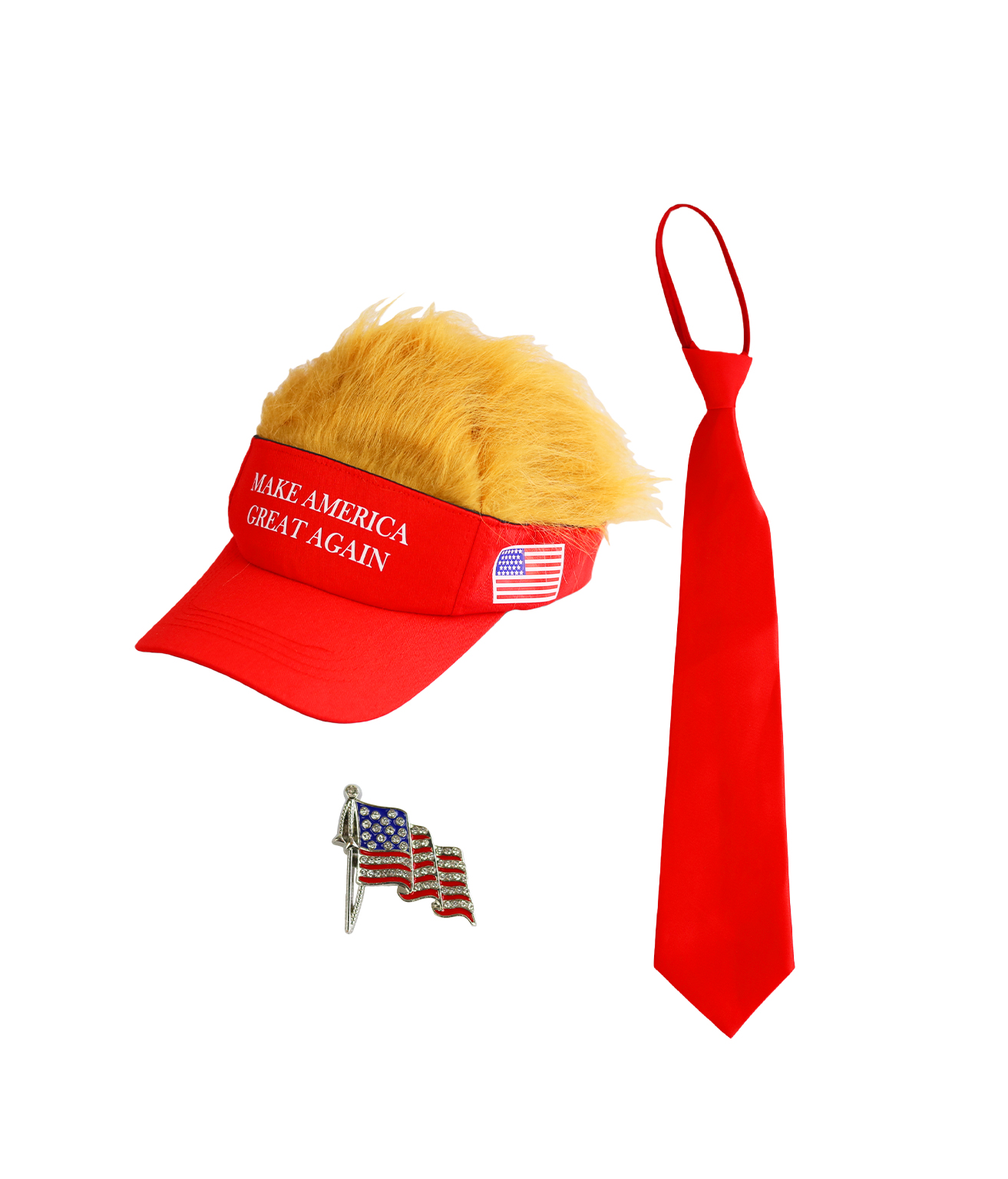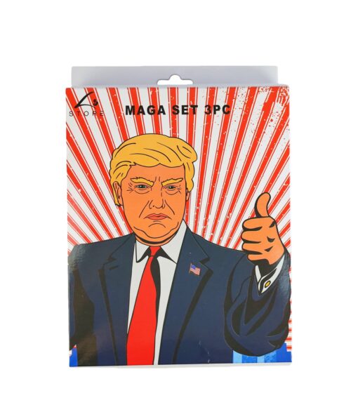 A three piece themed costume accessory set designed for parties, role play, and themed events. Includes distinctive accessories that create a bold and recognizable parody style look.