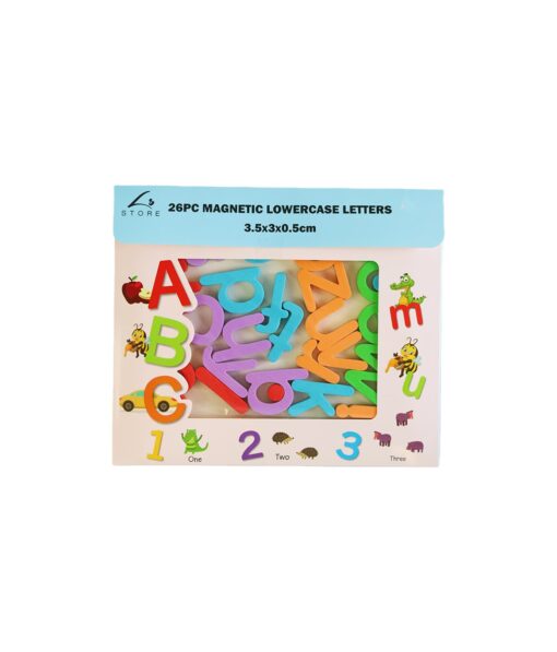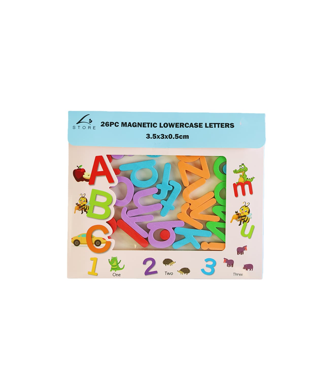 A 26 piece set of magnetic lowercase letters sized for small hands. Designed to support learning, letter recognition, and early word building while encouraging the development of childrens intelligence and imagination.