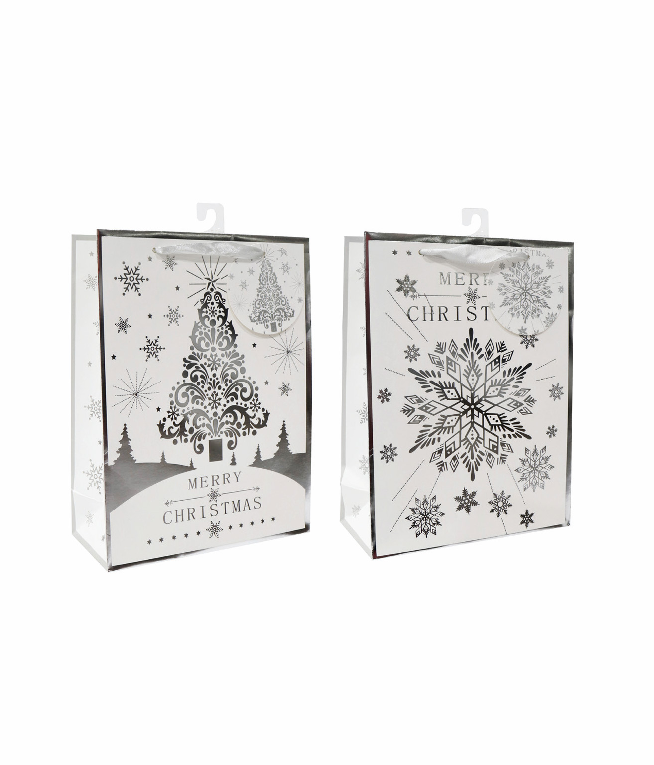 Give your presents a touch of elegance with this Medium Silver White Foil Christmas Giftbag.