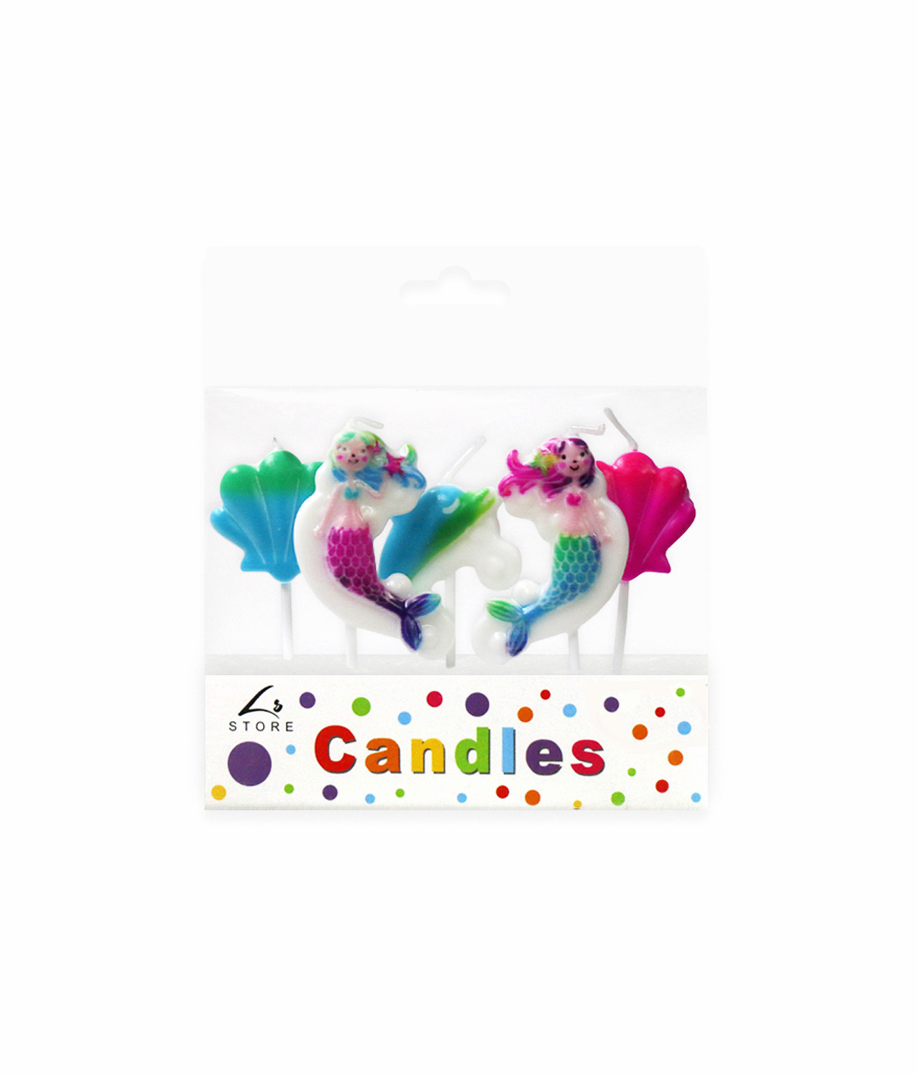 Featuring a charming mix of mermaids and seashells, these candles are perfect for adding a whimsical touch to birthday cakes and party desserts.