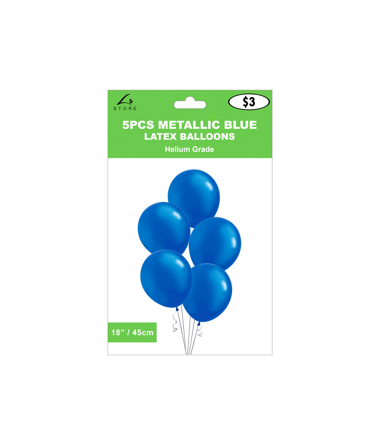 Our latex balloon pack includes a pack of 5 balloons in 18in sizing.