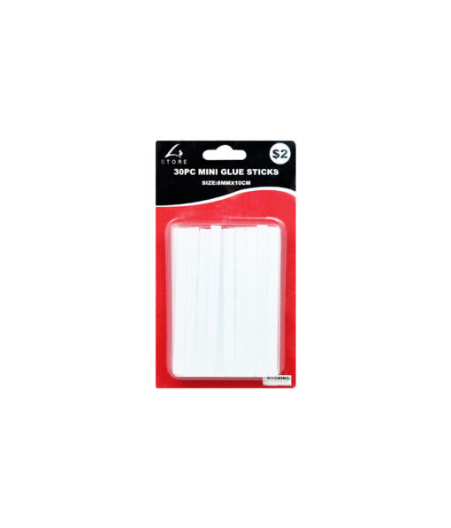The Mini Glue Gun Sticks 30pk is designed to work with mini glue guns, providing a strong and reliable bond for various crafting and repair projects.