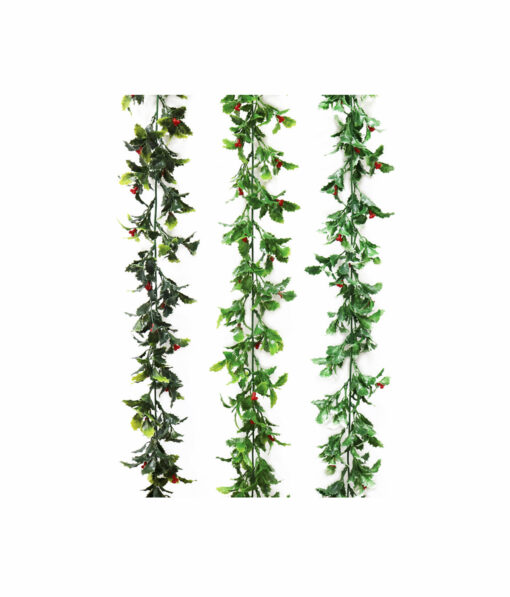 Add a touch of festive greenery with the Mini Holly Garland Assorted 150cm.