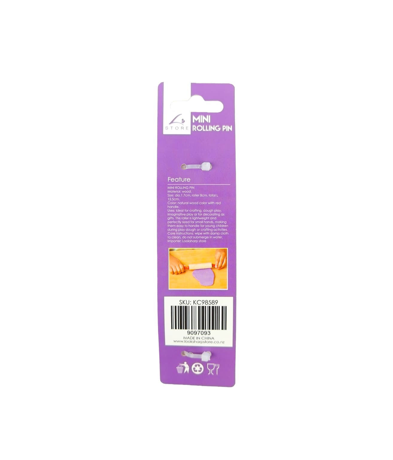 This Mini Rolling Pin (12.5cm) is a lightweight wooden tool with red handles, designed for kids’ play dough, crafting, and imaginative kitchen role-play.