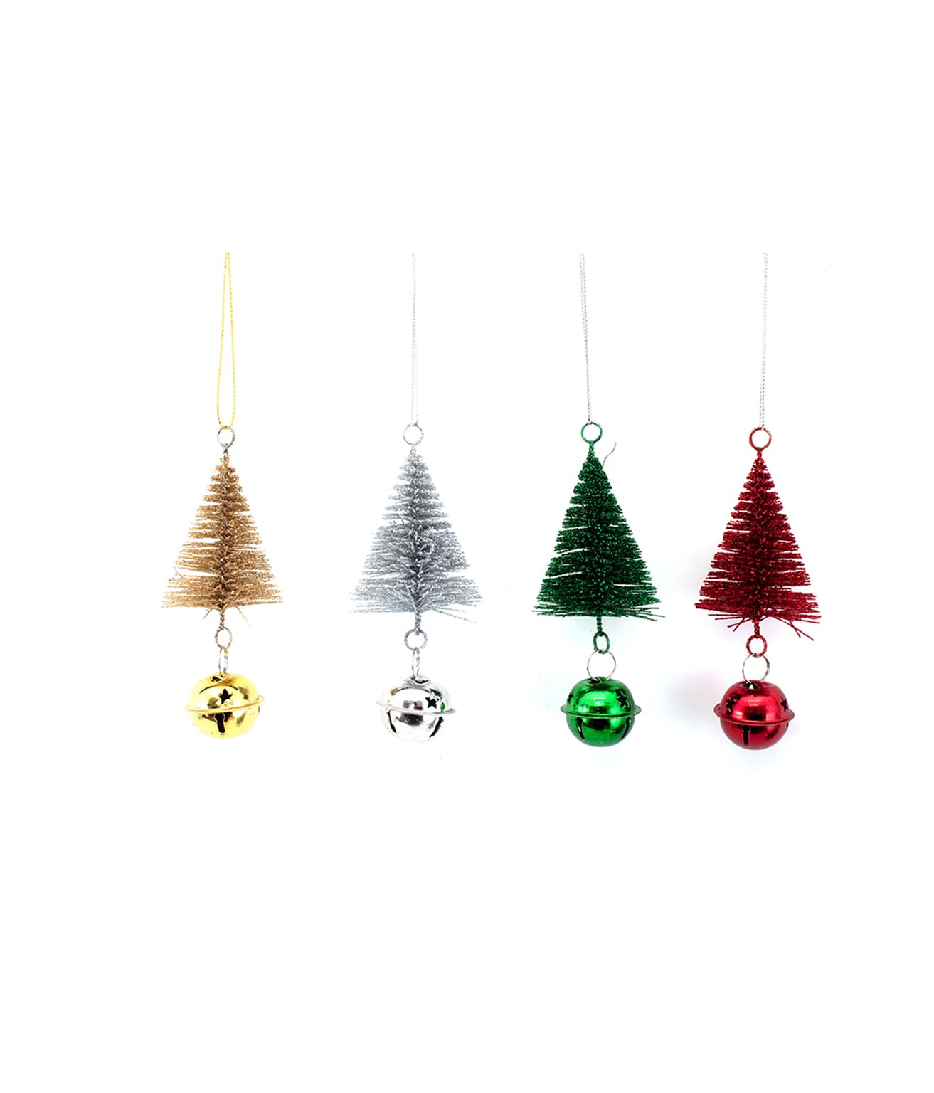 Add a festive touch to your holiday decorations with this Mini Tree With Bell Ornament Assorted 11.5cm.