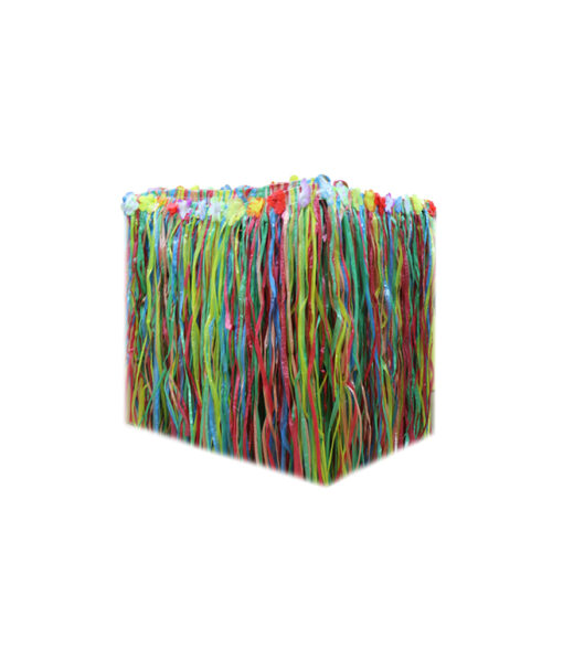 Multi-colour Luau table skirt measuring 75x274cm, perfect for adding a vibrant and festive touch to your party or event tables.