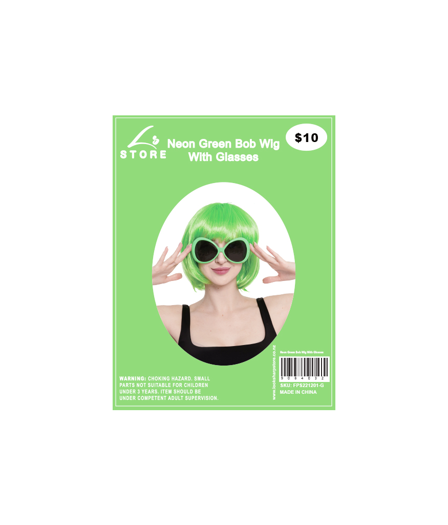 Stand out from the crowd with the Neon Green Bob Wig with Glasses Set.