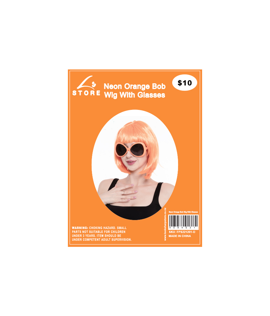 Get ready to shine with the Neon Orange Bob Wig with Glasses Set.