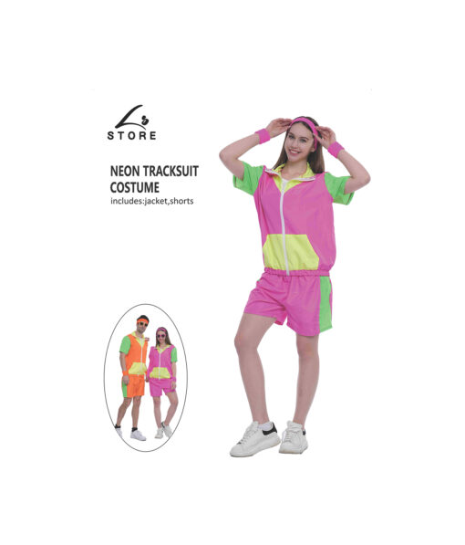 Add a pop of vibrant energy to your wardrobe with this Neon Pink Tracksuit Costume. Perfect for themed parties, retro events, or casual lounging, this eye-catching outfit is both bold and comfortable. Stand out in style and make a statement wherever you go!