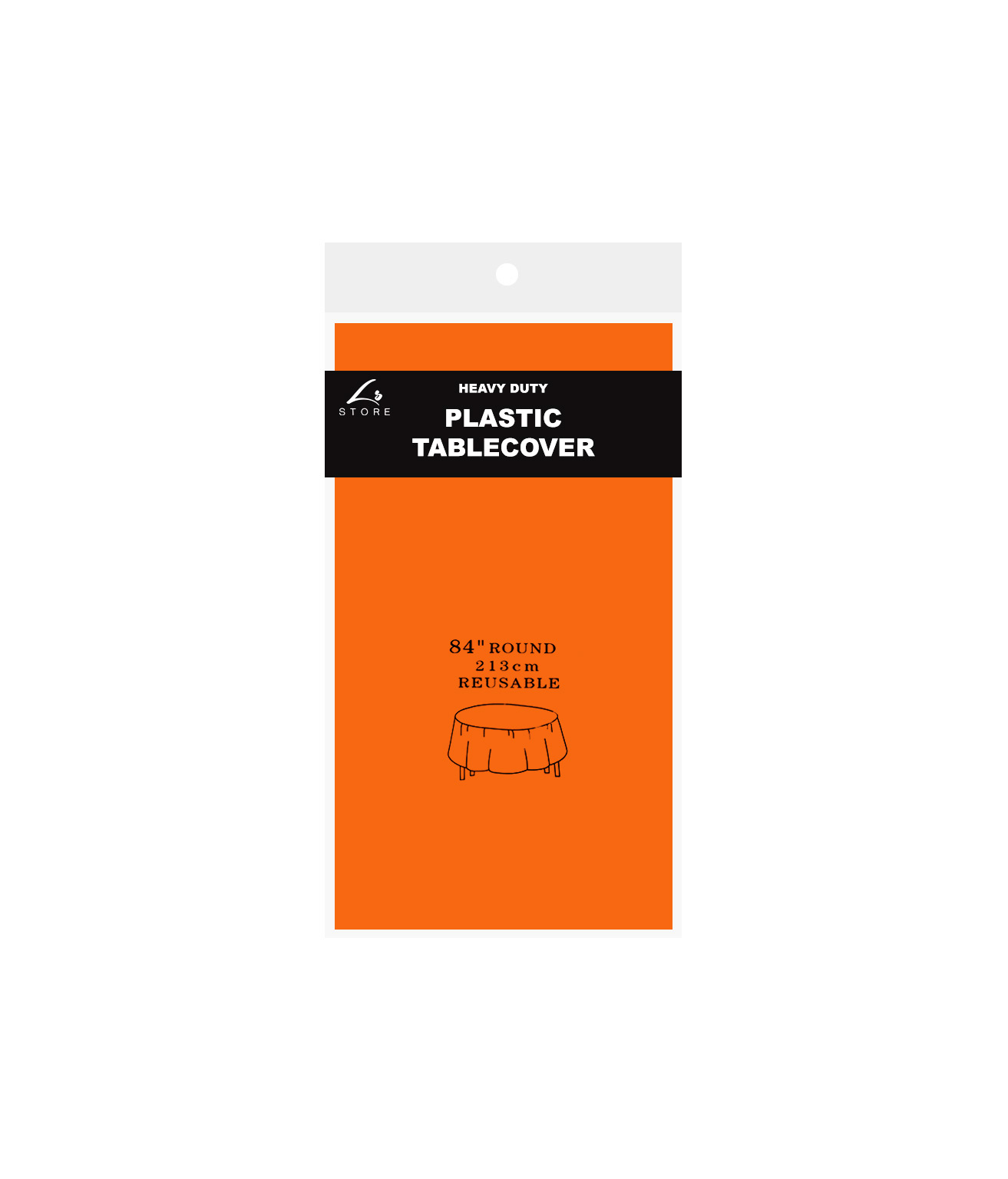 Our heavy duty plastic table cover measuring 213x213cm.