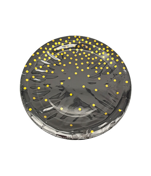 Paper Plate Black With Gold Dots 12pc x 9in