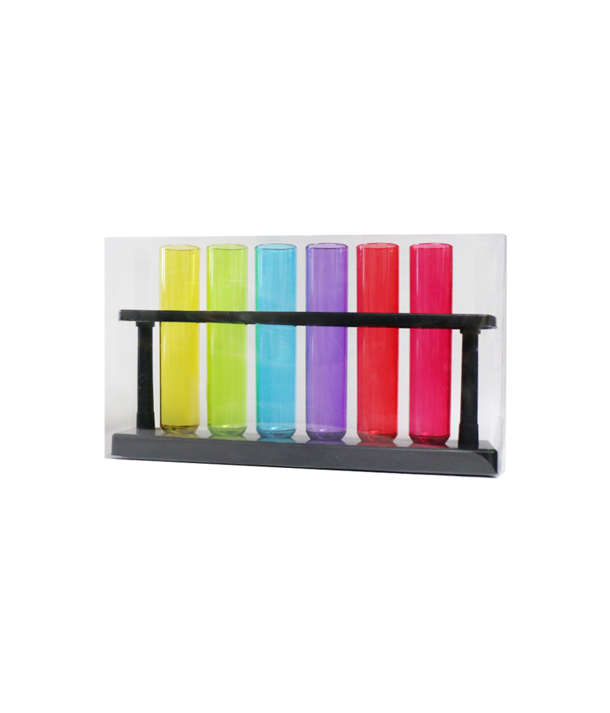 A set of 6 party shot tube glasses, perfect for serving shots or small beverages at parties, celebrations, and events.