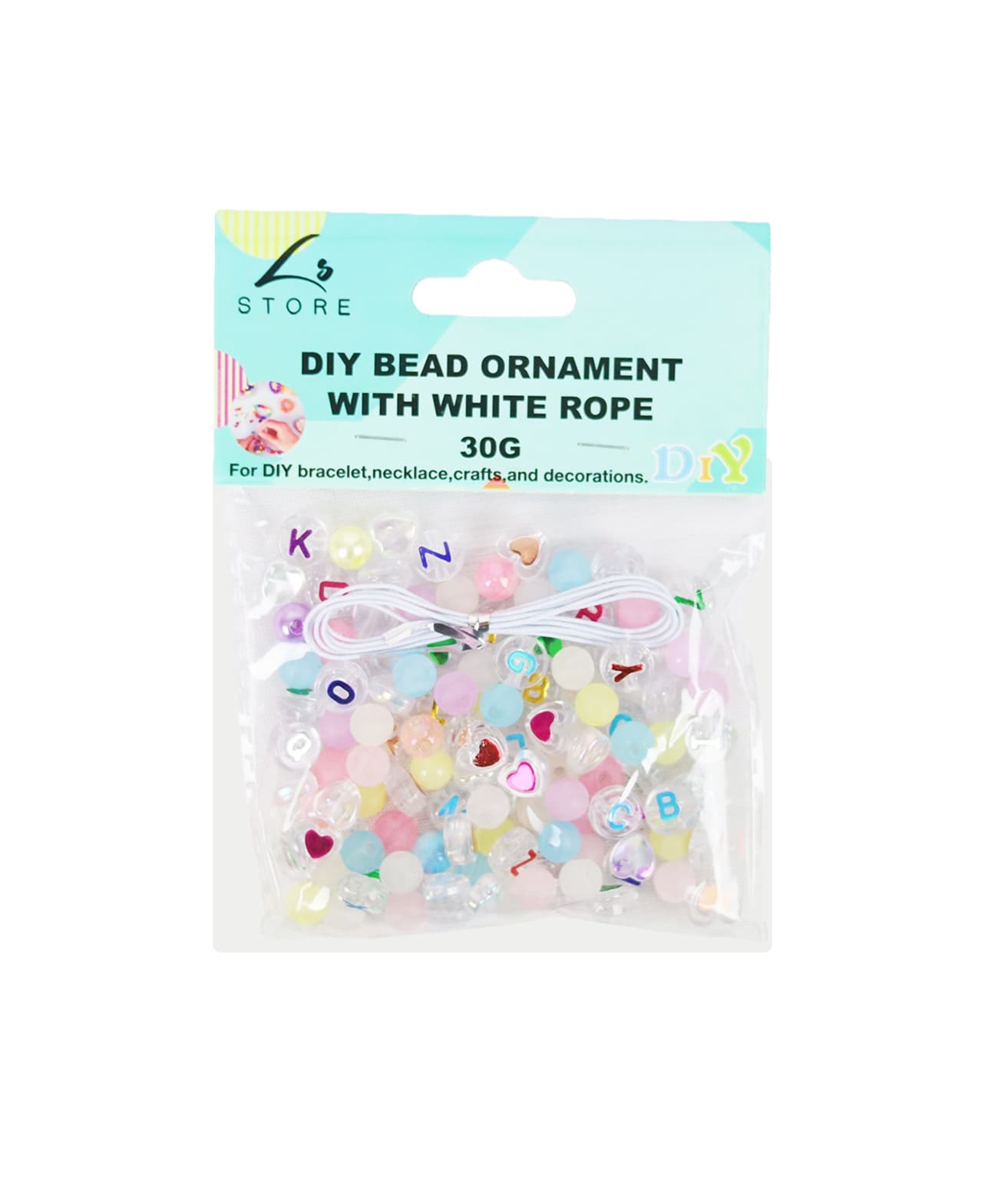 A 30g set of DIY bead ornaments with white rope. Suitable for creating bracelets, necklaces, crafts, and decorative projects for personalized craft designs.