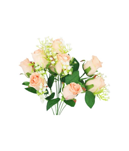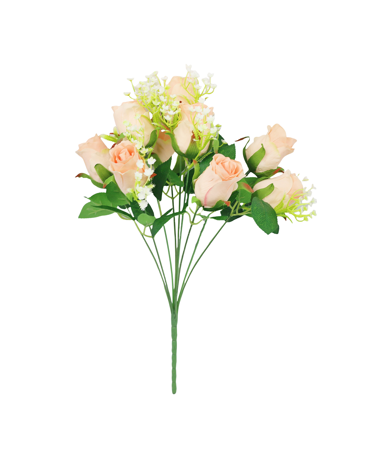 Elevate your space with our lifelike Peach Rose Bush 9 Heads 38cm.