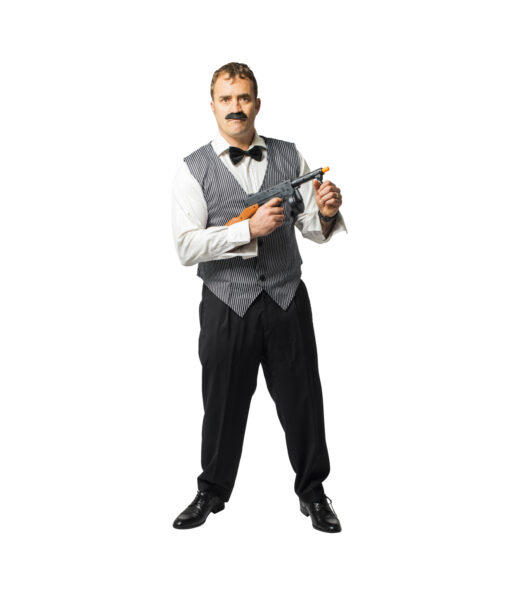 This vest piece is great for any mobster, gangster dress-up party ideas, add a Tommy gun toy prop with a mafia hat to complete your costume look!