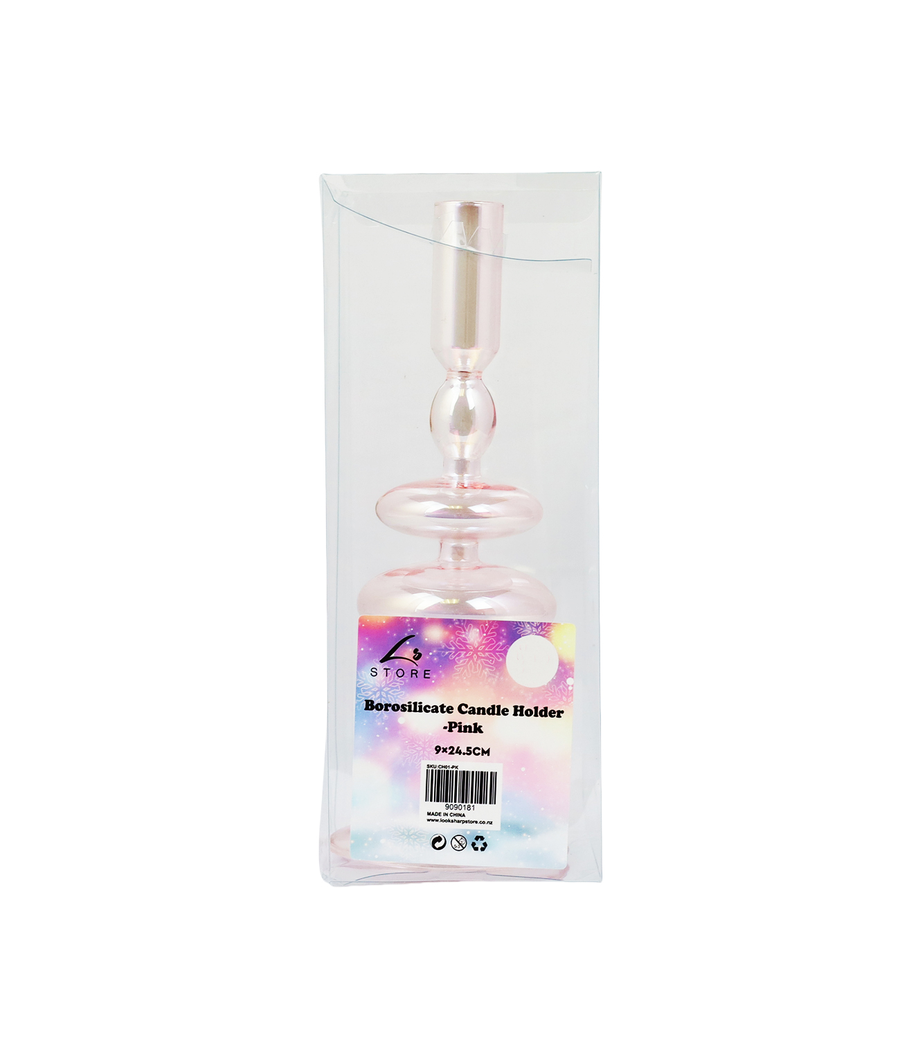 Add a pop of color and elegance to your space with our Pink Colorful Borosilicate Candle Holder.